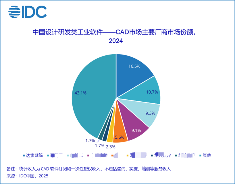 根据国际数据公司(IDC)持续跟踪中国工业软件市场,发布的《中国设计研发类工业软件之CAD市场厂商份额,2024:平面竞合,立体待破》(Doc#CHC52293825,2025年8月)报告显示,达索系统以16.5%的市场占有率蝉联中国CAD软件市场榜首。其领先地位显著高于第二名(10.7%)和第三名(9.3%)。在市场规模达61.2亿元、增速11.8%的赛道中,这一数据印证了达索系统在复杂工业场景中的不可替代性。欢迎联系新思诺售前/售后服务热线:400 636 8628咨询。