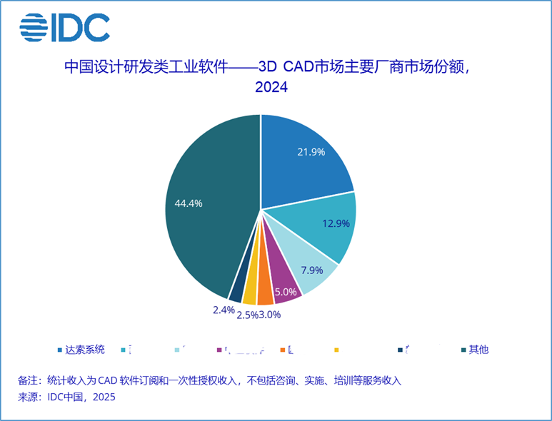 在决定高端制造能力的3D CAD领域,达索系统的优势进一步凸显。其基于自研几何建模内核的解决方案,在航空航天、汽车等复杂产品领域占据主导地位。IDC数据显示,国产厂商在3D领域,技术代差依然显著。