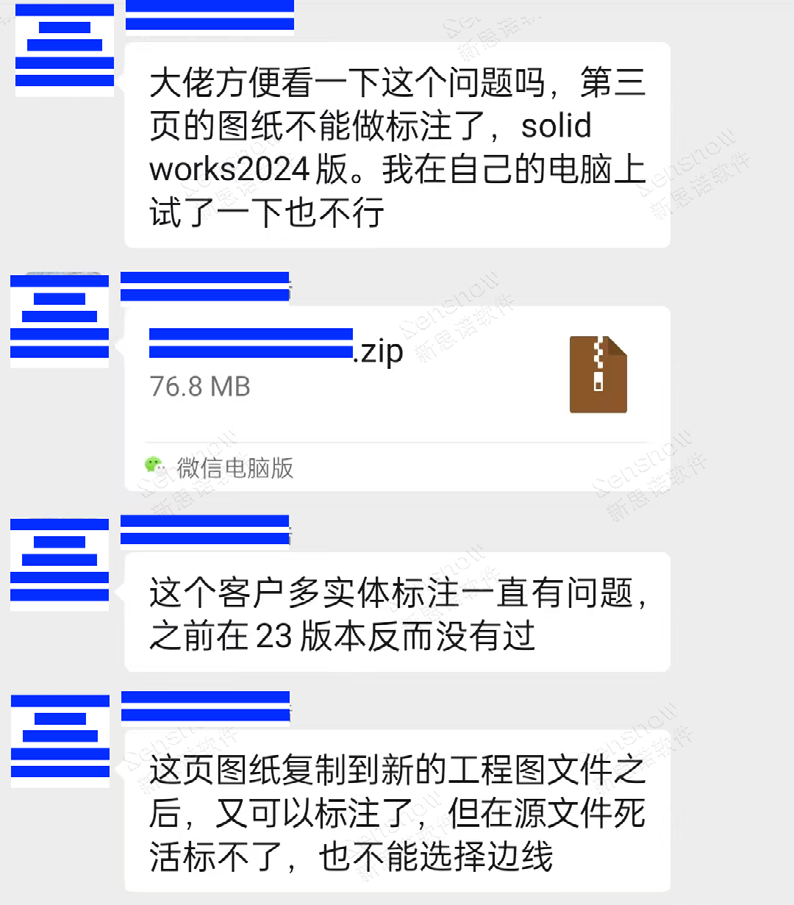 客户反馈:打开以前制作的一张分离的工程图中出现了无法创建尺寸标注的现象,鼠标悬停在视图元素上后应当在鼠标光标附近出现的动态高亮显示效果也不会工作,点击智能尺寸点选视图都无法创建需要的尺寸!