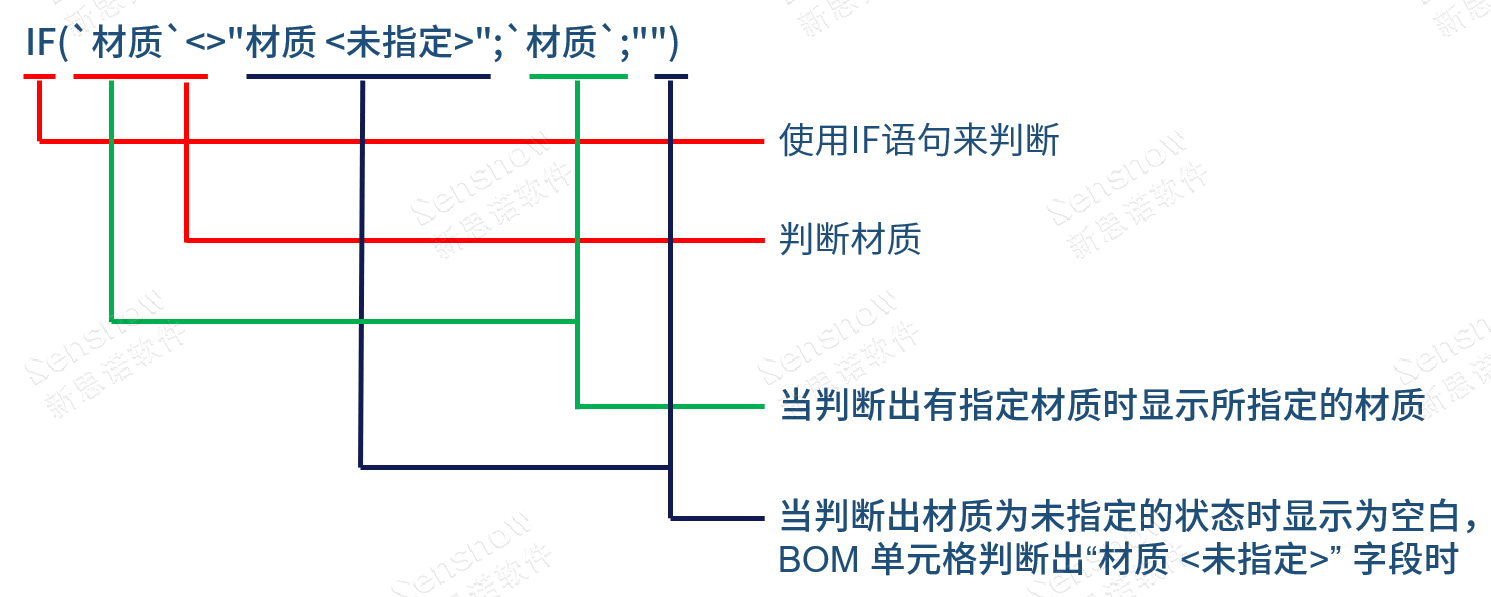 关于材质未指定的解决方案:IF(`材质`<>“材质 <未指定>";`材质`;"")
