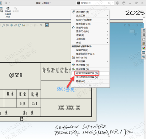 现在只要轻轻一点,工程图中所有链接了属性(如零件号、材料、重量等)或方程式的注解文本占位,立刻显示淡出的链接属性标识,清晰展示其数据来源。再点一下,标识隐藏,图纸恢复清爽!