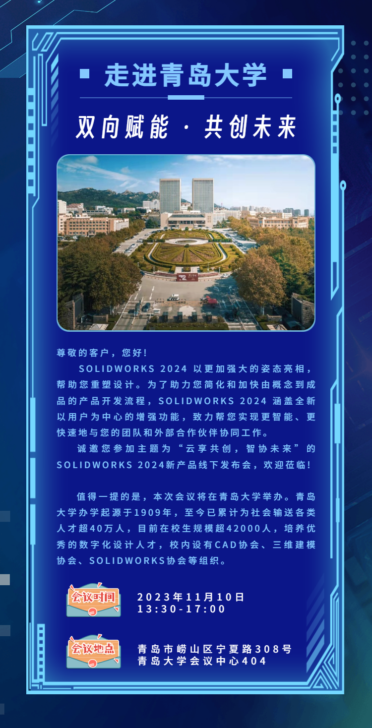 【邀请函】达索SOLIDWORKS 2024新产品发布会 · 青岛站