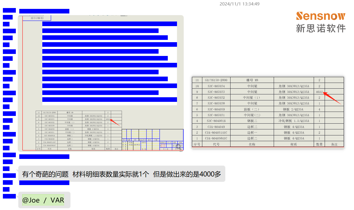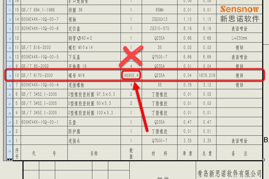 客户反馈在工程图 BOM 中某个件的数量值明显不正确,甚至出现了小数值!
