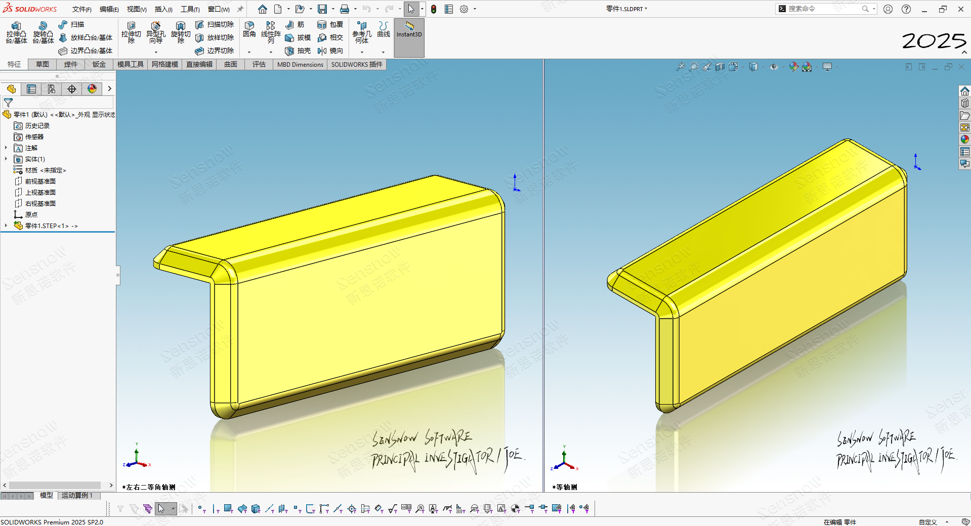 客户由于此模型为供应商提供的 STEP 中性图档格式,输入进 SOLIDWORKS 后没有创建步骤且直接编辑模型无法下手、难以修改!客户审阅后认为结构和形状是设计所需,只是尺寸部分需要调节,那么需要使用 SOLIDWORKS 来从零开始构建一个模型用于达到设计预期,也便于后续的设计更改。