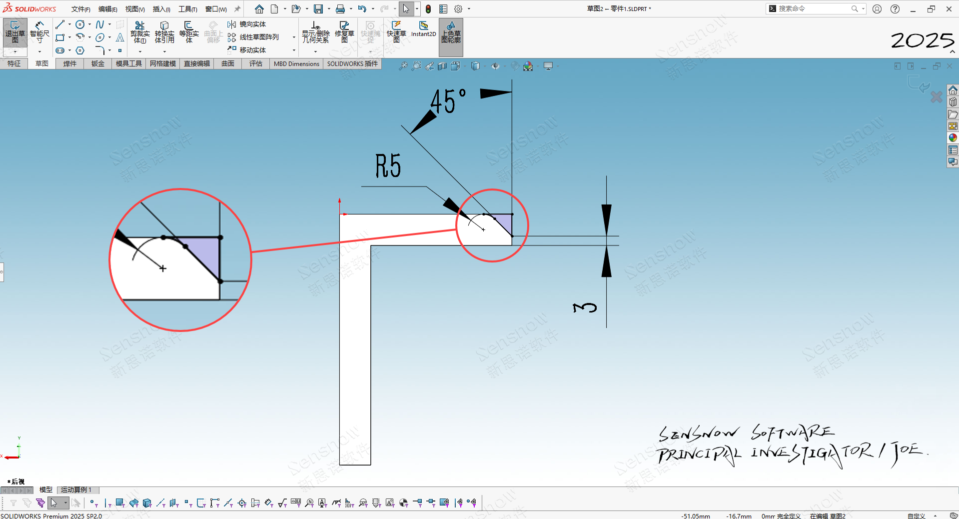 1、 主体为一个不等边角钢形状,外部一圈倒斜角,第一个难点就是中间圆角部分无法使用圆角工具进行创建,使用圆角功能无论怎么调节都不是我们所需要的圆角过渡,包络线圆角也无法实现;