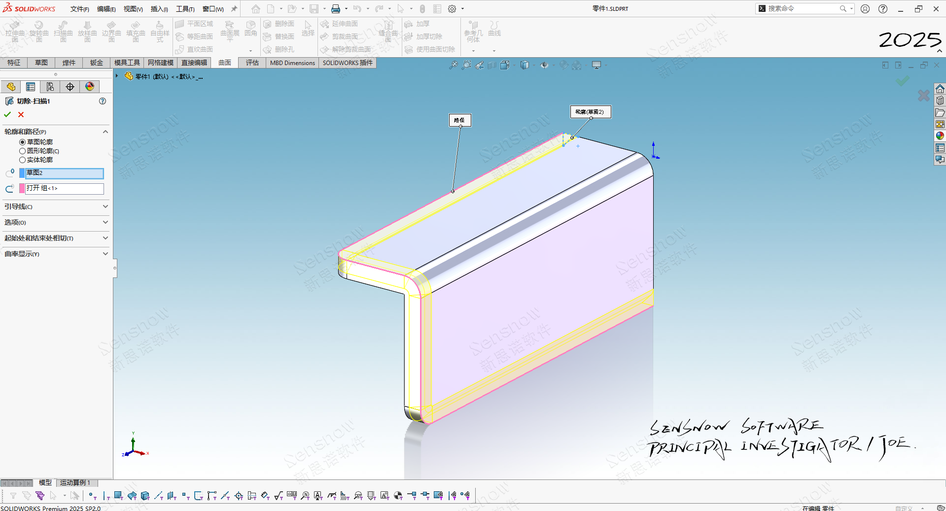 4、使用扫描切除一步成型: