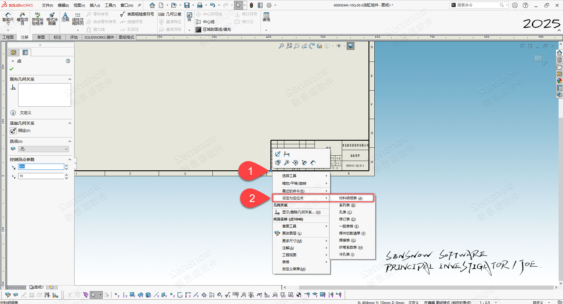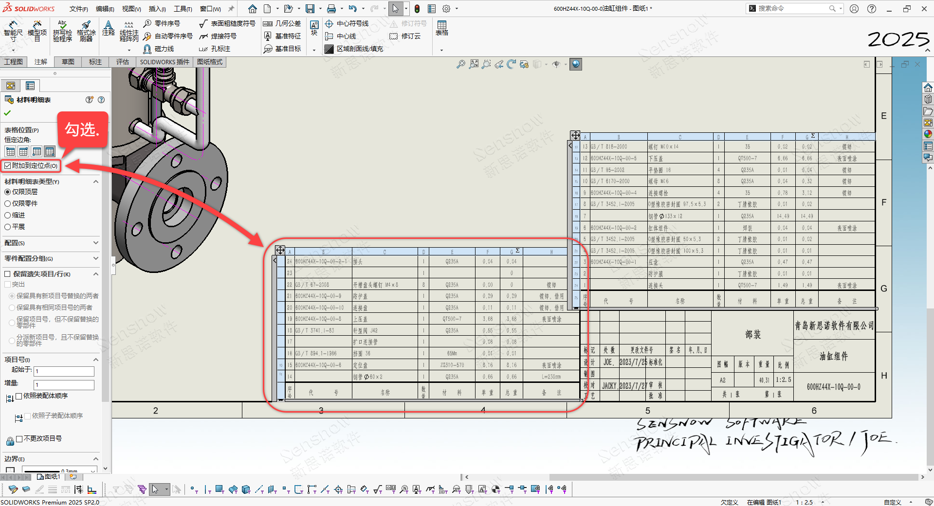 1、将 BOM 拆分后对在标题栏上方显示的表格执行取消 '附加到定位点';